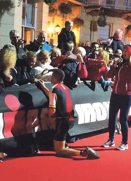 Everyone loves a romantic story and Ironman Wales may seem an unlikely setting. But not for competitor Jeremy Forshew. He marked running down the red carpet in his first Ironman event by proposing to girlfriend Louise Turner.