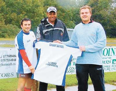 Tenby United rugby players and Carpenters Gavin 'ultimate male' Brace and Ifan 'box' Davies, of Brace and Davies Carpenters, recently sponsored a playing strip for The Convent Brothers 7s team.