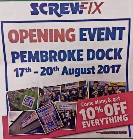 Tradespeople and DIYers are all invited to attend the Pembroke Dock Screwfix opening on Kingswood Trading Estate where they can also demonstrate their skills in a free-to-enter competition. The winner will receive a 40in smart TV.