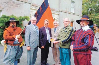 As reported last week, the greatest hoard of Civil War coins ever found in Wales has gone on display for the first time in the county in which they were discovered. Gold and silver coins dating back to the 1640s are the centrepiece of an exhibition at Scolton Manor Museum near Haverfordwest, which opened to the public on Saturday. The exhibition, entitled The Tregwynt Hoard: Coins, Cromwell and Cavaliers, was officially opened on Friday by Welsh Heritage Minister, Rhodri Glyn Thomas. It highlights the importance of the hoard as well as explaining the impact upon Wales and Pembrokeshire of the Civil War. The story of the Tregwynt hoard is a fascinating one. A local legend believed that buried treasure, connected to the French landing of February 22nd, 1797, lay in the grounds of Tregwynt Mansion near Fishguard. Worried guests attending a ball, frightened by the news that the French had landed at Carreg Wastad, buried their valuables in the grounds of the mansion before departing. Although this legend was well known, nothing was ever found to prove it. That was until one day in 1996 when a local metal detector enthusiast, Roy Lewis, uncovered a large hoard of gold and silver coins not from 1797, but in-fact belonging to the Civil War of the 1640s. The then owners of Tregwynt Mansion, Mr. and Mrs. Sayer, were carrying out extensive ground work and invited Roy in to search the disturbed earth. After some unsuccessful searching, intuition told him to carry out a sweep with his metal detector underneath trees in the grounds. Immediately, a positive signal resulted in the discovery of a hammered silver half-crown of Charles I (1625-1649), followed by hammered sixpences of Elizabeth I (1558-1603). The lost treasure of Tregwynt had been found. Over the next few days the significance of the hoard revealed itself. More and more coins were unearthed from the ground, and reported to Edward Besly, assistant keeper of numismatics at the National Museum of Wales, and the Pembrokeshire Coroner, Michael Howells. In total, 500 coins were recovered from the site at Tregwynt, along with shards of pottery and a piece of lead thought to make up the container and lid of the vessel housing the coins. A fine gold 'posy' ring, engraved 'rather death then falce of fayth' was also found. The coins cover the reigns of Henry VIII (1509 -1547), Edward VI (1547-1553); Philip and Mary (1554-1558), Elizabeth I (1558-1603), James I (1603-1625) and Charles I (1625-1649). It is thought the collection was most likely to have been buried in 1648, the year of rebellion in Pembrokeshire, one of a number of uprisings known as the 'Second Civil War'. The Governor of Pembroke Castle, John Poyer, who had always served Parliament loyally through the first Civil War, rebelled when told he was to be replaced. This brief uprising was put down at St. Fagans, near Cardiff. Cromwell chased the rebels back to Pembrokeshire and laid siege to Pembroke Castle. The hoard was bought for the nation with the help of Heritage Lottery Fund and housed at the National Museum Wales in Cardiff. The Pembrokeshire exhibition runs until October 31. The opening weekend of the Scolton Manor exhibition also played host to The Sealed Knot Society. Major General Rowland Laugharne's Company staged a re-enactment of the Battle of Colby Moor at the weekend.