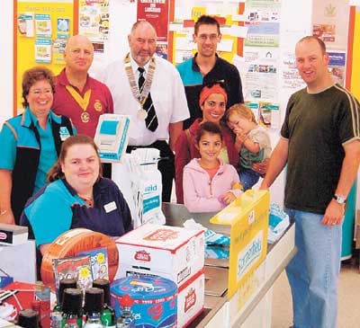 As well as a little something to wet the baby's head, Tim, ably assisted by Somerfield staff, Lorraine Jones and Barrie Evans, was able to get a host of goods in the five minutes allowed, and with Christmas on the horizon, the opportunity to purchase some festive goodies was not missed. Tenby Rotary Club president, Graham Fry, said that the club were delighted with the way that the trolley dash raffle had gone; they had received excellent support from the community, for which the club was very grateful.