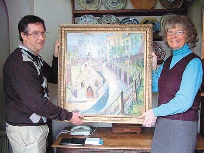 Pictured are honorary curator of the museum, Mike Brew, and Mrs. Anna Davies, with a picture by Herbert Allen, part of the donation to the museum.