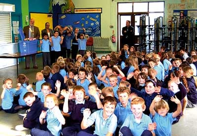Rotarian Graham Haddleton, president of the Rotary Club of Narberth and Whitland, and Rotarian Ken Morgan gave a short talk to the pupils on how the Aqua Box and its contents, when full, can provide essential emergency support to families and communities suffering from the consequences of natural disasters around the world. It is possible that this box might go to Thailand to help those who have endured the recent horrendous flooding.