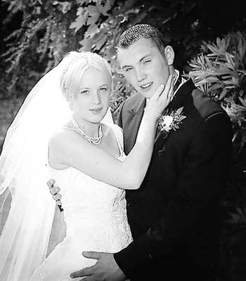 The bridesmaids were Meinir Owens, chief bridesmaid, Menna Owens, Rhian Marrow and Beccie Thornton (friends), and Lucy Perkins and Gina Perkins (groom's sister), while flower girls were Shannon Coverdale and Jemma Stock (cousins of the bride).