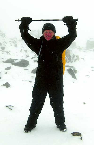Rob and his companions reached the summit of Snowdon on a Friday afternoon only to find it enveloped in mist and drizzle. It was all down hill after that! The trek to the top of Scafell Pike found the intrepid climbers enduring freezing conditions with treacherous icy patches underfoot - but they reached the top at about 2 am in the morning. Worse was to come at Ben Nevis where the summit was covered in a blanket of snow but, undaunted, they marched on to the top before descending again to cross the finishing line at the foot of the mountain at 8.45 pm.
