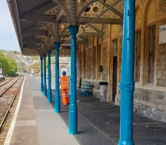 This package of minor improvement works carried out at the Tenby station recently included the redecoration and rebranding of station furniture items including: canopy columns, token kiosks and equipment cabinets, window frames, lighting columns, and external seating.
