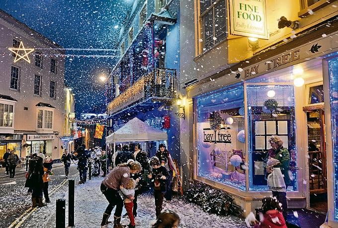 Mayor of Tenby, Clr. Mrs Sam Skyrme-Blackhall will set off down to Castle Hill to meet Father Christmas at 4.30 pm to join Coastguards, firefighters and RNLI crew members for a ‘Blue Light’ parade through a festive flurry of snow from the roof of Tenby House Hotel (weather permitting) to turn on the lights on the town Christmas tree in the grounds of St Mary’s Church at 5 pm.