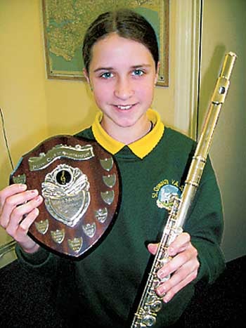 Pictured is flautist Emily Tranter, a pupil at St. Oswald's School, Jeffreyston. Emily, aged 11, was this year's winner of the Rotary Club of Saundersfoot's 'Junior Musician of the Year' competition, held recently at Saundersfoot. She is a keen musician and also plays piano, clarinet and guitar.