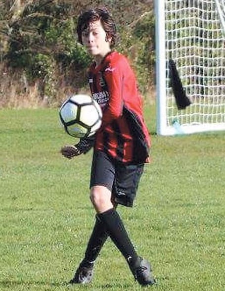 Cosh had all but broken through the midfield and only had one defender to beat, but what or who was it? Was it a bird? No. Was it a plane? No. Was it superman? No. It was a soaring Ned Davies (pictured) in a moment of pure instinct, knowing it was the only way he could stop the attack, who produced a superb diving header that resulted in him chewing on a mouthful of the Clicketts mud, but he was soon up to continue the play and it meant goal number two for Archie.